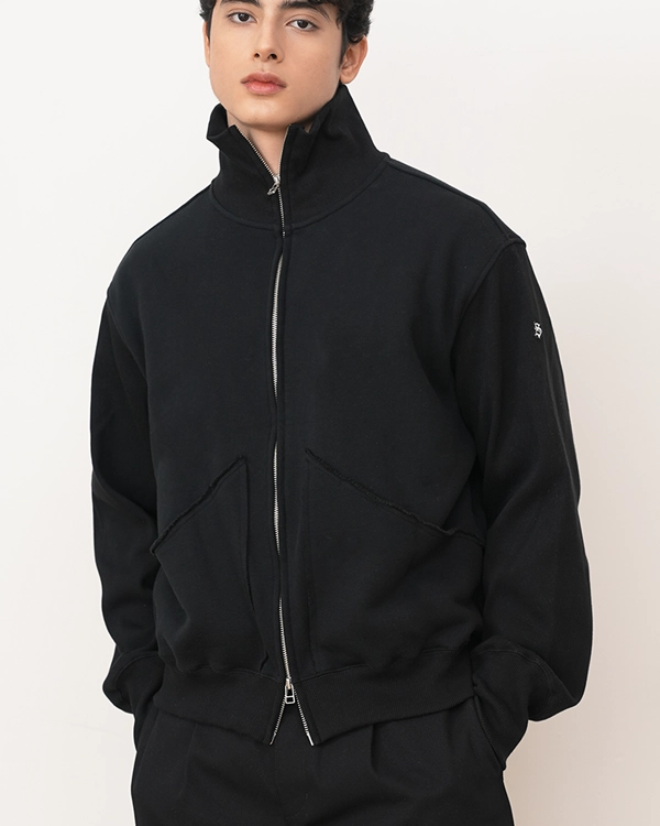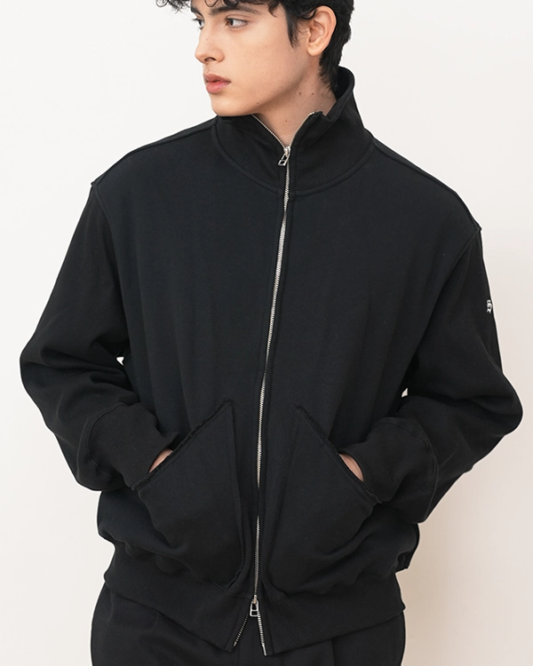미니멀한 트랙 자켓 실루엣을 바탕으로 하는 고급스러운 디자인의 스웻 소재 집업 자켓입니다.