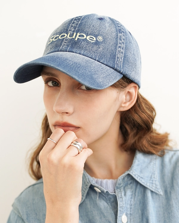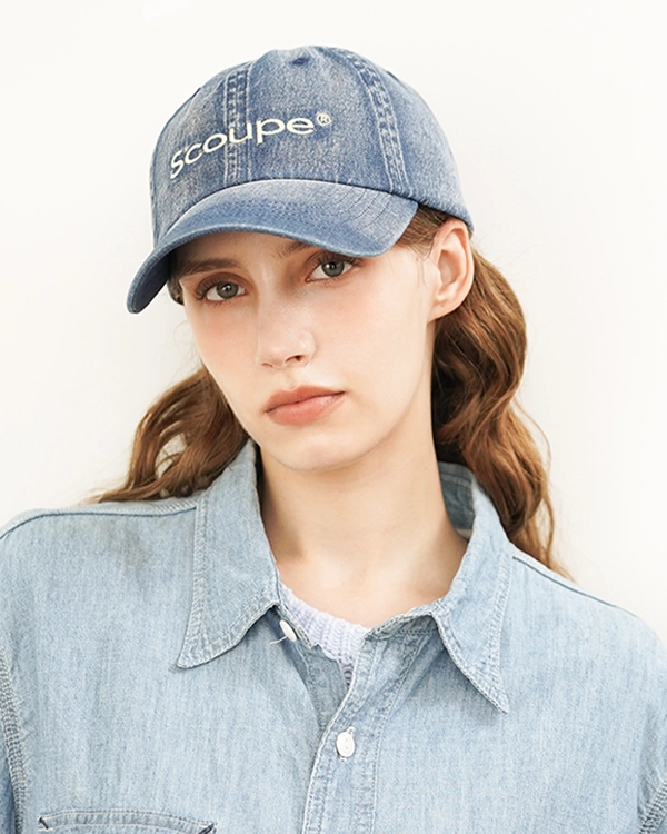 시그니처 로고 빈티지 데님 볼캡 라이트블루