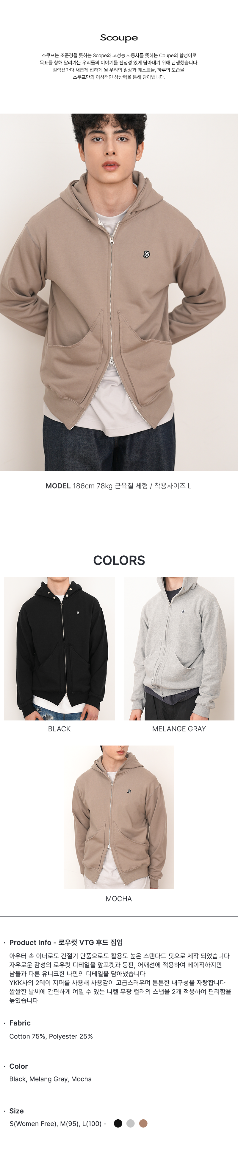 로우컷 VTG 후드 집업 모카