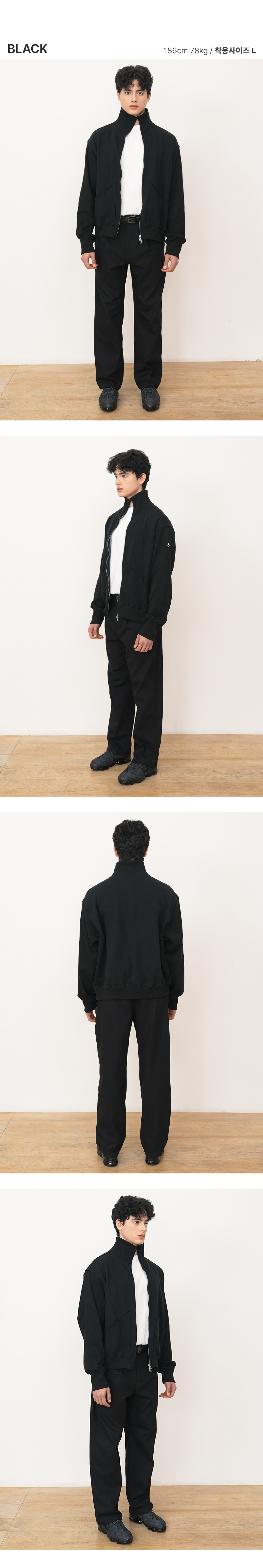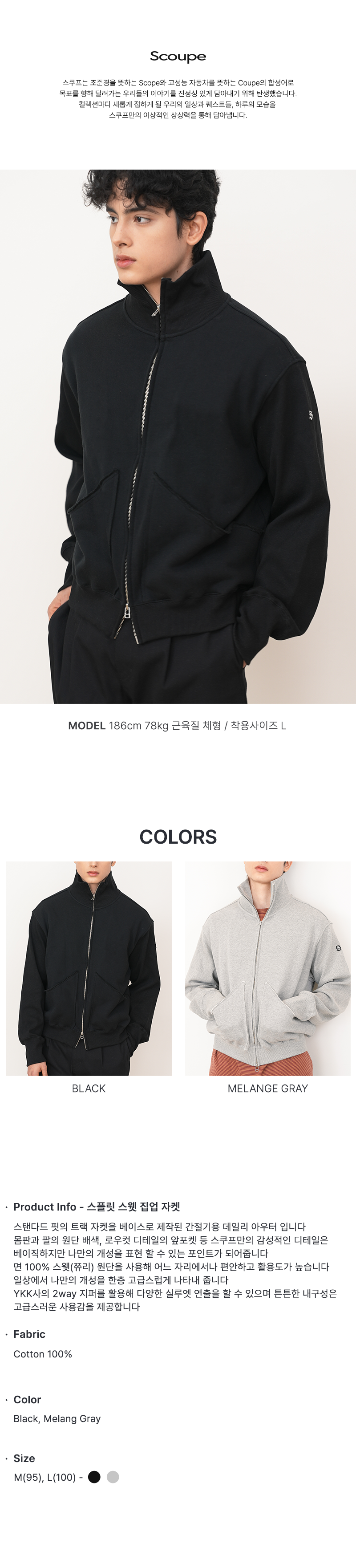 미니멀한 트랙 자켓 실루엣을 바탕으로 하는 고급스러운 디자인의 스웻 소재 집업 자켓입니다.
