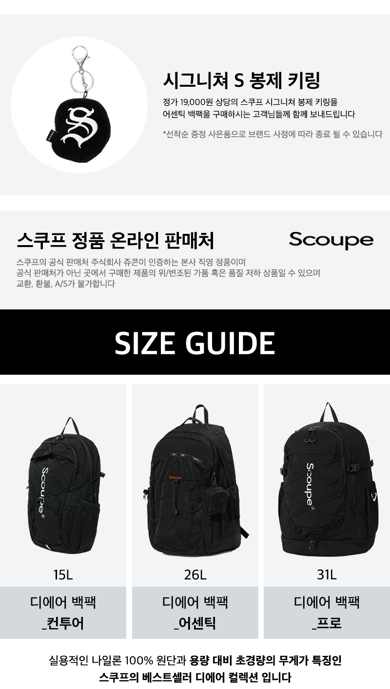 정통 스트릿 백팩 스타일 디자인의 오리지널리티를 고수하며, 스쿠프만의 미니멀한 감각과 실용적인 소재를 통해 새롭게 재 해석한 디에어 백팩 어센틱 입니다.